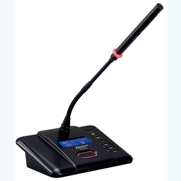 主席單元具有討論會議功能的會議話筒單元,一改突破以往傳統會議系統所采用8針線纜的手拉手傳輸方式的缺陷。而采用現代數字化主流連接方式:RJ45網線型接口,采用高可靠、高性能低功耗處理器,全數字化信號處理對整套系統在抗干擾能力、通訊穩定性和保密性上得到更有效的提升,系統采用加密智能數字化控制技術。話筒底座上設有USB接口,方便與電腦連接可實現對會議過程中進行錄音或會議內容重放播音和網絡信號、背景音樂播放,還可通過使用軟件實時召開多人遠程音頻網絡會議,目前網絡會議支持IPAD/Iphone、IOS系統、Android系統和適用于WindowsXP/7電腦操作系統終端。話筒音頭采用全銅金屬材料設計配合本公司專利最新聲學研究成果;使得語音更加清晰厚實,頻響寬廣,靈敏度高不易產生嘯叫等特點。主席單元設有中斷鍵,可在任何情況下關閉列席話筒,便于管理會議秩序。