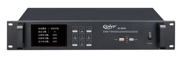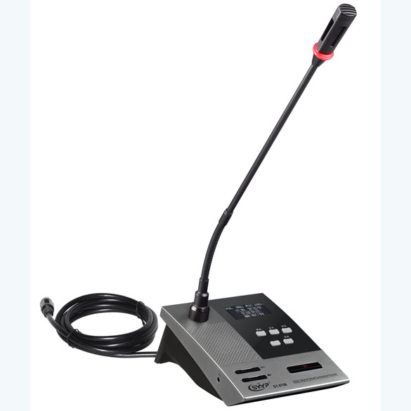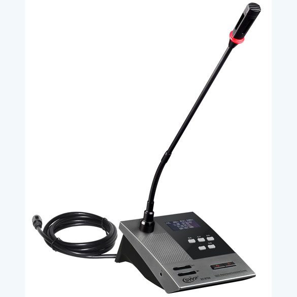 1. 采用全數(shù)字集成電路技術(shù),集會議討論、視像跟蹤、電子簽到、投票表決功能于一體。 2. 七種發(fā)言模式:先進(jìn)先出、后進(jìn)先出、主席專用、限制發(fā)言、自由討論、壓倒輪替、申請發(fā)言。 3. 七種發(fā)言人數(shù):1-6(人可選 )、N(全開放)。 4. 采用輕觸式九鍵控制菜單,并支持中/英文切換等功能;LCD屏顯示工作內(nèi)容。 5. 自帶防嘯叫功能,開啟移頻功能可以有效地抑制嘯叫、擴展音量,增加拾音距離,保證語音的傳送質(zhì)量,保真度高,聲音清晰。 6. 通用USB錄音接口,支持熱插拔,可隨意配搭常用電子產(chǎn)品使用。 7.備PC軟件,電腦操作隨意控。主屏/副屏同時顯示表決內(nèi)容,彰顯會議公開化。 8. RS232端口可外接PC,結(jié)合加密型軟件聯(lián)動操作,也可連接中控,令會議設(shè)備更智能化。 9. 主機可以連接60個會議話筒單元,分四路并聯(lián)輸出,每路可連接20個單元,可無限增加電源擴展或數(shù)據(jù)擴展。 10. 連接狀態(tài)不正常時產(chǎn)生鋒嗚,按OK鍵可停止鳴叫;并具有智能斷電記憶功能,可記憶程序運行狀態(tài),若意外斷電后,通電后即恢復(fù)最后一次設(shè)置。 11. 內(nèi)置電話偶合器輸入和輸出端口,可用來召開遠(yuǎn)程電話會議。 12. 連接視像頭可實現(xiàn)發(fā)言實時視像追蹤功能,支持4路攝像頭信號輸入,2路視頻輸出;三種攝像機通訊協(xié)議,兼容性強: Pelco_D 、Pelco_P 、VISCA。 電源供應(yīng): AC-100-240V 50/60Hz 輸出阻抗: RCA:200歐 LINE:200歐 BALANCE:300歐 UNBALANCE:400歐 輸入阻抗: LINE:50K歐 DIN:50K歐 信噪比: 100dB(1KHz THD1%) 機箱尺寸: 480X360X85MM 附件: 10M 8P 屏蔽線 SY-870A主席單元(下圖) SY-870A主席單元功能參數(shù): 1、智能數(shù)字化設(shè)計控制電路,功耗低。 2、外置三鍵表決、電子簽到功能。 3、獨特的40CM長管,360度全方位旋轉(zhuǎn)設(shè)計,可拆卸;高保真單指向性電容咪芯,拾音距離遠(yuǎn)、聲音還原度好、清晰度高、噪音小。 4、主席單元有優(yōu)先發(fā)言權(quán),可隨時關(guān)閉其他列席單元。 5、128X64LCD液晶,顯示單元身份、發(fā)言模式、發(fā)言狀態(tài)、發(fā)言時間。 6、優(yōu)良抗手機干擾能力。 7、無噪音輕觸開關(guān)設(shè)計,操作靈活; 8、獨有音箱網(wǎng)外觀設(shè)計內(nèi)置揚聲器,可用于會議擴音及播放會議背景音樂。 9、輕觸開關(guān)音量控制設(shè)計,可調(diào)節(jié)音量大小。 10、左側(cè)設(shè)計有3.5音頻輸出,收聽其他列席會議發(fā)言內(nèi)容。 11、會議單元支持熱插拔功能,自帶2.1米8P連接線;手拉手連接模式,安裝簡便,操作靈活。 類型: 電容式 指向性: 單一指向性 頻率響應(yīng): 30Hz-18KHz 靈敏度: -43±2db@1KHz 輸入電壓: DC 9V(主機供電) 最小輸入阻抗: 1千歐 新噪比: 68 dB 輸入導(dǎo)線: 2.0M 8P屏蔽線 附件: 防風(fēng)海綿、2.0M 8P T3M屏蔽線 SY-870B代表單元(下圖) SY-870B代表單元功能參數(shù):