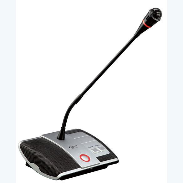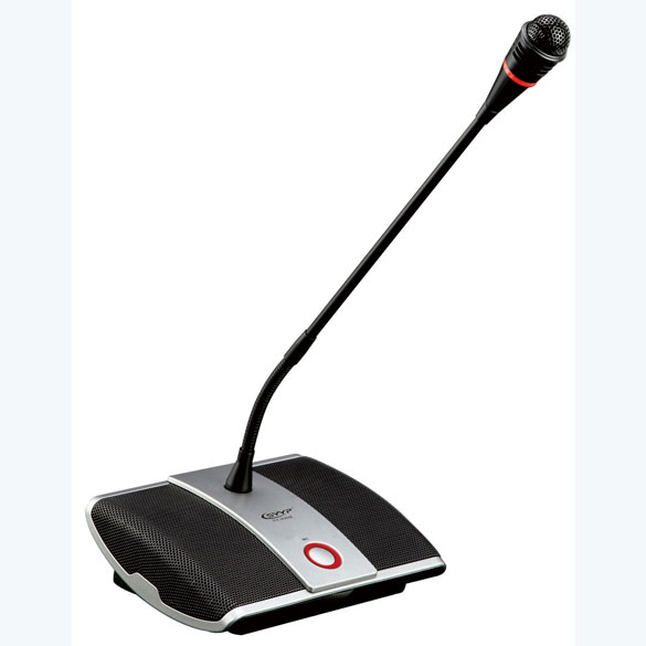 具有討論會議功能的會議話筒單元,一改突破以往傳統會議系統所采用8針線纜的手拉手傳輸方式的缺陷。而采用現代數字化主流連接方式:RJ45網線型接口,采用高可靠、高性能低功耗處理器,全數字化信號處理對整套系統在抗干擾能力、通訊穩定性和保密性上得到更有效的提升,系統采用加密智能數字化控制技術。全金屬話筒底座小巧精致。話筒音頭采用全銅金屬材料設計配合本公司專利最新聲學研究成果;使得語音更加清晰厚實,頻響寬廣,靈敏度高不易產生嘯叫等特點。主席單元設有中斷鍵,可在任何情況下關閉列席話筒,便于管理會議秩序。