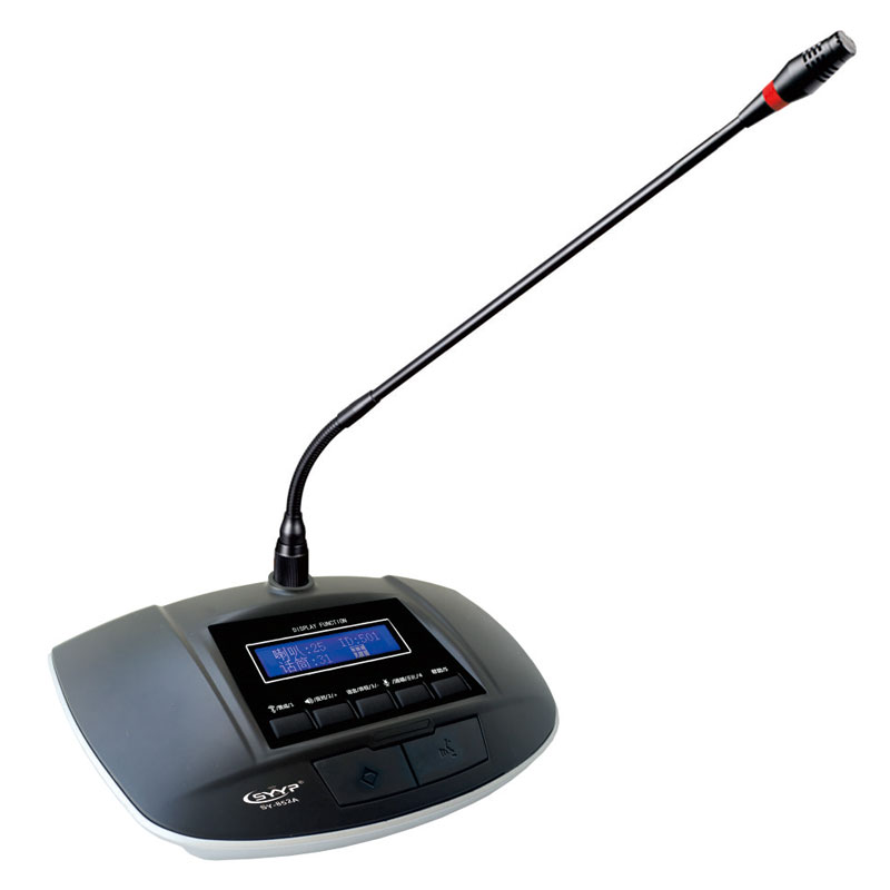 ◆ 符合IEC60194、GBT15381-94國際標(biāo)準(zhǔn),高強度鋅合金壓鑄,外觀大氣沉穩(wěn)。 ◆ 集發(fā)言、投票、按鍵簽到、表決功能于一體的會議發(fā)言單元。 ◆ 帶雙色指示燈環(huán)(紅色/白色),發(fā)言為紅色·咪頭外殼根據(jù)聲學(xué)原理設(shè)計,配合超指向性電容咪實現(xiàn)高度的人聲還原,帶聲頻 啟動功能,發(fā)言時話筒自動打開。 ◆ 系統(tǒng)單元熱插拔功能,超強的抗手機干擾能力。 ◆ 具有消咳鍵,當(dāng)發(fā)言人員咳嗽時,可暫時關(guān)閉麥克風(fēng),防止咳嗽聲傳到會場。 ◆ 具有話筒開關(guān)鍵,6個投票表決鍵,服務(wù)呼叫功能幫助鍵,中文簡體、繁體、英文菜單切換按鍵。 ◆ 高精度超亮度128*64LCD液晶屏,清晰顯示單元工作狀態(tài)。 ◆ 本會議單元的ID號碼、申請發(fā)言人數(shù)、表決結(jié)果、簽到人數(shù)以及各種操作信息等內(nèi)容。 ◆ 單元由主機供電,輸入電壓為24V,屬于安全電壓。 ◆ 主席單元具有優(yōu)先鍵、批準(zhǔn)鍵。支持連接電腦將代表話筒設(shè)置VIP話筒,VIP不受主席控制,連接位置不受限制。"手拉手"或 "T型"連接模式。