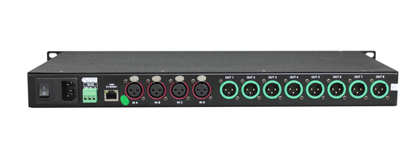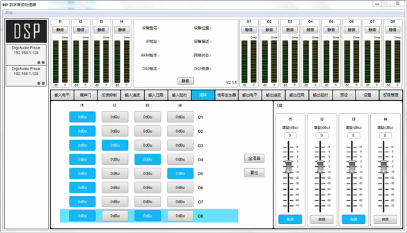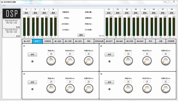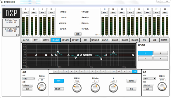 本4進(jìn)8出的音箱處理器,使用最新的第四代SHARC ADSP-21488 400Mhz浮點(diǎn)DSP,具有強(qiáng)大的DSP處理能力。每個(gè)輸入、輸出有16段參數(shù)濾波器,增益控制、噪聲門功能、RMS壓限、內(nèi)置的粉紅/白噪聲發(fā)生器,以及可調(diào)的延時(shí)。分頻器的斜率從6dB/Oct48dB/Oct范圍內(nèi)可選。延時(shí)步進(jìn)精度0.02ms,電平增益精度0.1dBu,滿足現(xiàn)場精細(xì)調(diào)節(jié)。AD-DA動(dòng)態(tài)范圍114dBu。系統(tǒng)動(dòng)態(tài)范圍110dBu。每個(gè)輸入通道包含噪聲門,反饋抑制器,壓限器。100M以太網(wǎng)接口。PC軟件自動(dòng)發(fā)現(xiàn)處理器。32種系統(tǒng)預(yù)設(shè)。通道參數(shù)快速拷貝。 ■可通過以太網(wǎng)升級(jí)DSP、ARM固件。 ■最大輸入電平 18dBu;最大輸出電平 18dBu;默認(rèn)輸出電平 0dBu。 ■諧波失真THD+N <0.003%;1kHz@+4dBu<0.0035%;1kHz@+10dBm;<0.0035%;20Hz~20kHz@+4dBu。 ■頻率響應(yīng) 20Hz-20kHz, +/-0.2dB。 ■輸入到輸出動(dòng)態(tài)范圍 110dB (無記權(quán));信噪比 -110dB (無記權(quán)。 ■ADC動(dòng)態(tài)范圍 CS5361 114dB;DAC動(dòng)態(tài)范圍 CS4382A 114dB。 ■DSP 400Mhz浮點(diǎn) SHARC ADSP-21488。 ■采樣頻率 48K;量化 24Bit;模式存儲(chǔ) 32。 ■壓限器 前后獨(dú)立共12個(gè): 延時(shí)器 輸出1-4 218ms。