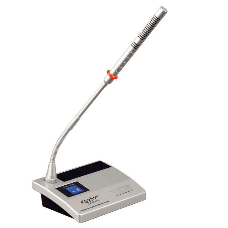 ◆ 符合IEC60194、GBT15381-94國際標準,高強度鋅合金壓鑄,外觀大氣沉穩。 ◆ 集發言、投票、按鍵簽到、表決功能于一體的會議發言單元。 ◆ 帶雙色指示燈環(紅色/白色),發言為紅色 ◆ 咪頭外殼根據聲學原理設計,配合超指向性電容咪實現高度的人聲還原,帶聲頻啟動功能,發言時話筒自動打開。 ◆ 系統單元熱插拔功能,超強的抗手機干擾能力。 ◆ 具有消咳鍵,當發言人員咳嗽時,可暫時關閉麥克風,防止咳嗽聲傳到會場。 ◆ 具有話筒開關鍵,6個投票表決鍵,服務呼叫功能幫助鍵,中文簡體、繁體、英文菜單切換按鍵。 ◆ 高精度超亮度128*64LCD液晶屏,清晰顯示單元工作狀態。 ◆ 本會議單元的ID號碼、申請發言人數、表決結果、簽到人數以及各種操作信息等內容。 ◆ 單元由主機供電,輸入電壓為24V,屬于安全電壓。 ◆ 主席單元具有優先鍵、批準鍵。支持連接電腦將代表話筒設置VIP話筒,VIP不受主席控制,連接位置不受限制。 "手拉手"或 "T型"連接模式。