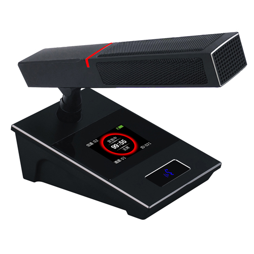 *話筒具備高強度防手機電磁波干擾設(shè)計,可以杜絕手機干擾噪音鄰頻干擾抑制; *主席話筒具備優(yōu)先功能,一鍵關(guān)閉所有開啟中的代表話筒; *話筒具有IPS彩色顯示屏,特有廣視角、色彩艷麗,實時顯示話筒狀態(tài):剩余電量、ID號、使用頻道以及發(fā)言時間計算; *內(nèi)置大容量充電式鋰電池,一次充電可待機13小時,連續(xù)使用時間達8小時,話筒使用不分正反面TYPE-C接口充電,標(biāo)配5V充電器(選配20孔充電機); *話筒表面使用啞光黑鋁合金面板,搭配黑色有機玻璃,銀白色倒邊,靚麗優(yōu)雅,堅固耐用; *隱藏式簡潔話筒開關(guān),防塵易清理,話筒打開后圖標(biāo)亮起,具有持久耐用,按鍵清晰; *標(biāo)配可插拔式配高強度陽極氧化工藝鋁合金方形短麥桿并帶有指示燈,開戶時亮