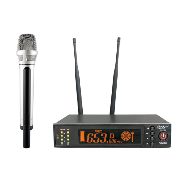 調制方式: 寬帶調頻 頻率范圍: 640-690MHZ,740-790MHZ可選 信道數目: 200 頻率穩定度: ±0.005% 動態范圍: 100dB 最大偏差: ±48KHZ,水平限度 音頻頻率響應: 40HZ-18KHZ(±3dB) 信噪比: 105dB 相鄰信道抑制: ≤0.3% 鄰頻干擾比: ≥70dB 有效工作距離: 200 米 適用場合:中大型演出活動,體育場,酒吧,會議大廳等場合 接收機技術參數: 接收方式: 自動調頻 震蕩方式: PLL 天線輸入 :(50 Ω) 極聯輸出: (50 Ω) 0dBm±2dB 中頻: 110 MHz 靈敏度: 12 dBuV 雜散抑制: ≥75dB 最大輸出電平: +10dBV 供電量: 12V DC 工作電流: ≤ 500mA 發射器技術參數: 手持麥克風內置螺旋天線,腰掛發射器采用1/4波長鞭狀天線 輸出功率:高功率100mW, 低功率: 30mW 拾音頭: 動圈式 雜散抑制: -60dB 供電量: 兩節5號AA堿性電池