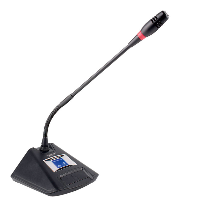 ◆ 新穎的外殼設計,符合人體工程學 ◆ 帶顯示屏,顯示話筒狀態。 ◆ 旋鈕式可插拔高指向性話筒,并帶有發言環形指示燈(紅色) ◆ 主席單元不受發言人數限制 ◆ 主席單元可以在會議進程的任意時刻臨時性切斷代表單元的發言并對正在發言的代表單元作6.提示以有效管理整個會議進程 ◆ 主席單元具有全權控制會議秩序的優先功能 ◆ 單元為無源設備,由系統主機供電。輸入電壓為24V,屬安全范圍 ◆ 單元選配置2.1米+1.5米T型8芯連線,線材采用全線鋁箔+水線屏蔽,大大降低強電磁波對線材的干擾 ◆ 主席單元的連接位置不受限制,可串聯在線路的任意位置 ◆ T型"手拉手"電纜串聯連接模式,便于安裝和維護 ◆ 輸入、輸出 8P T型線 2.1mx1.5m ◆ 輸入 單指向性電容麥克風MIC ◆ 工作電壓 DC24V(由主機供給) ◆ 電流損耗 40mA ◆ 靈敏度 -55Db ◆ 信噪比 72dB ◆ 麥克風電流感應 -42dB±5.1dB ◆ 頻率響應 90-11KHZ ◆ 安裝方式 桌面式