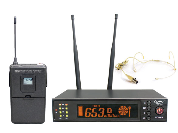調制方式: 寬帶調頻 頻率范圍: 640-690MHZ,740-790MHZ可選 信道數目: 200 頻率穩定度: ±0.005% 動態范圍: 100dB 最大偏差: ±48KHZ,水平限度 音頻頻率響應: 40HZ-18KHZ(±3dB) 信噪比: 105dB 相鄰信道抑制: ≤0.3% 鄰頻干擾比: ≥70dB 有效工作距離: 200 米 適用場合:中大型演出活動,體育場,酒吧,會議大廳等場合 接收機技術參數: 接收方式: 自動調頻 震蕩方式: PLL 天線輸入 :(50 Ω) 極聯輸出: (50 Ω) 0dBm±2dB 中頻: 110 MHz 靈敏度: 12 dBuV 雜散抑制: ≥75dB 最大輸出電平: +10dBV 供電量: 12V DC 工作電流: ≤ 500mA 發射器技術參數: 手持麥克風內置螺旋天線,腰掛發射器采用1/4波長鞭狀天線 輸出功率:高功率100mW, 低功率: 30mW 拾音頭: 動圈式 雜散抑制: -60dB 供電量: 兩節5號AA堿性電池