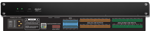 模擬輸入通道:16 模擬輸出通道:16 處理器:ADI SHARC 21489@450 MHz SIMD; DSP處理能力:400 MIPS,1.6 GFLOPS; 采樣率:48 kHz,± 100 ppm; 動態(tài)范圍(A/D/A):>107 dB,A加權; THD + 噪音:<-90 dB (22.4 kHz BW,不加權);1 kHz @+18 dBu帶0 dB增益; 內置一進一出的USB聲卡,支持音樂播放、錄制和軟視頻會議(如:ZOOM,騰訊會議,釘釘會議等); 總線式AEC,尾長時間:512ms,收斂率:60dB/S, 回聲消除幅度:60dB; 獨立通道的AFC(反饋抑制),采用陷波式算法,傳聲增益提升幅度:10dB; 噪聲抑制(ANS),信噪比提升18dB 8段英式參量均衡,提供5種濾波器選擇:Parametric,Lowshelf,Highshelf,Lowpass,Highpass; 提供終端用戶訂制操作界面,最大支持30臺設備同一個界面管理; 具有中央控制功能,可對系統(tǒng)中的電源、信號切換、環(huán)境控制、音頻等整體控制,實現(xiàn)一鍵開啟系統(tǒng)所需要的功能。