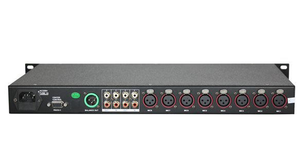 本產品為新一代多功能8路數字會議混音器。在傳統的混音器功能上獨創(chuàng)了會議系統功能,更具備人性化LCD和PC軟件操作界面,其中PC操作支持免驅USB連接。適合中小型會議室,多謀體教學室,法院庭審。 本產品支持8路獨立的混音,聲音處理采用專用音頻處理IC,聲音清晰,無雜音,整體信噪比高。每路支持獨立的幻象電源控制,聲音大小調節(jié),聲控靈敏度調節(jié),優(yōu)先級調節(jié),發(fā)言時間調節(jié),更支持常開和禁止功能,以適應某些特定場合。 會議功能支持發(fā)言人數,限制模式,隊列順序和優(yōu)先模式設置,可自由組合。 系統具有反饋降噪功能,可自由打開或關閉(依機器型號而定),打開后拾音距離可達到50cm;系統支持豐富的中控功能。 輸入電源電壓:220V(+-10%) 功率:<50W 單路話筒幻象電源(輸出):48V(+-1V) 信噪比:>85dB 失真度:<0.5% 通道分離度:>95dB 單路話筒頻響:70Hz---18kHz 單路話筒輸入阻抗:1K歐姆 聲控靈敏度:-47dB---0dB(48級可調,0為關閉,衰減>95dB) 單路話筒音量調節(jié):-47dB---0dB(48級可調,0為關閉,衰減>95dB) 音量總輸出:-47dB---0dB(48級可調,0為關閉,衰減>95dB) 音量總輸入:-47dB---0dB(48級可調,0為關閉,衰減>95dB) 平衡輸出阻抗:1K歐姆 不平衡輸出阻抗:1K歐姆 不平衡輸入阻抗:3.9K歐姆 6.3輸入阻抗:3.9K歐姆 中控接口:支持,RS232C母 USB(TypeB母)控制:支持(免驅) 電路話筒觸發(fā)電壓:<100mV 單路話筒打開時間:<350uS 單路話筒延時時間:1-999S 尺寸:48.1cm(W)X4.8cm(H)X25.9cm(D) 凈重:3.45Kg