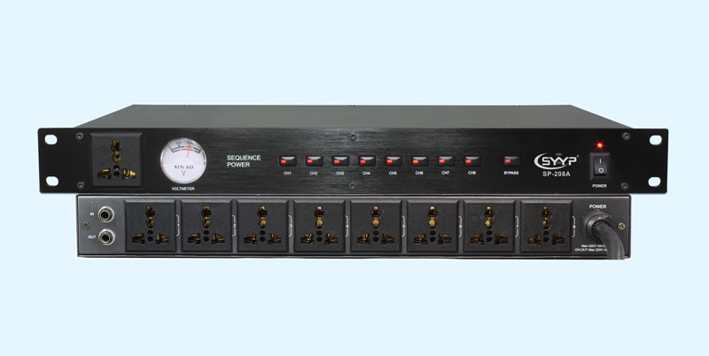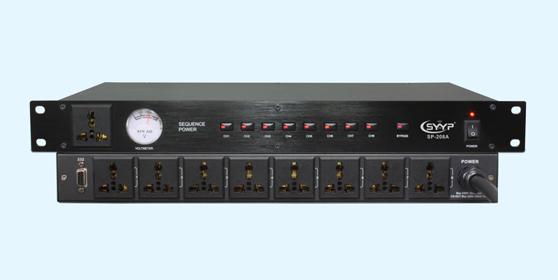 時(shí)序器功能介紹: 本產(chǎn)品適合于音響工程、電視廣播系統(tǒng)、會(huì)議室及電力設(shè)施場(chǎng)合需要按次序電源分配系統(tǒng)的場(chǎng)合。 電源時(shí)序器能夠按照前級(jí)到后級(jí)逐個(gè)順序啟動(dòng)設(shè)備,有效統(tǒng)一管理控制各類用電設(shè)備,避免人為失誤操作,從而確保用電系統(tǒng)的穩(wěn)定性和操作的簡(jiǎn)便性。 本廠生產(chǎn)的電源時(shí)序器采用高純度鱗銅萬能插座,耐磨導(dǎo)電性強(qiáng),而不采用雜質(zhì)較多的黃銅,采用大品牌12V電流繼電器30A/250V,名牌大廠繼電器的選用,加上可靠的滅弧電路,令到繼電器的觸點(diǎn)溫升特別小,壽命長(zhǎng),整個(gè)系統(tǒng)非??煽?。3芯*6平方3C認(rèn)證專業(yè)電纜。每一通道能受得起AC220V,13-20A電流,線路板采用雙面板SMT貼片技術(shù)2安銅高精密度板材制作。每一臺(tái)電源時(shí)序器都能受得起4-8臺(tái),600-2000W專業(yè)功放,整機(jī)正常使用3000-5000W功率。 時(shí)序器參數(shù): 1、 輸入電源:交流110V~220V 50Hz~60Hz 2、 控制電量:每路最大輸出電流30A 3、 額定輸出電壓:交流220V/50Hz 4、 可控制電源:8路 5、 不可控制電源:1路 6、 每路動(dòng)作延時(shí)時(shí)間: 默認(rèn)1.5秒(1-4.5S可調(diào)) 7、 電源開關(guān)控制電源