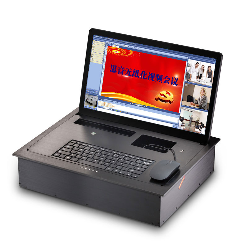 為了解決單純觸摸屏錄入文字慢的問題,我公司專門研究TUT-1561搭載15.6寸觸摸屏,自帶鍵鼠式翻轉(zhuǎn)無紙化會(huì)議終端。它集翻轉(zhuǎn)顯示器,升降鍵盤,電腦主機(jī),無紙化UI界面于一體,開啟翻轉(zhuǎn)器后,顯示器自動(dòng)翻轉(zhuǎn)成一定角度,鍵盤也隨著升起,外形輕巧美觀大方,最新機(jī)械防夾手功能,安全可靠,翻轉(zhuǎn)面板上配有開關(guān),USB,操作按鍵。可以單機(jī)遙控也可通過中控實(shí)現(xiàn)多臺(tái)集合控制。